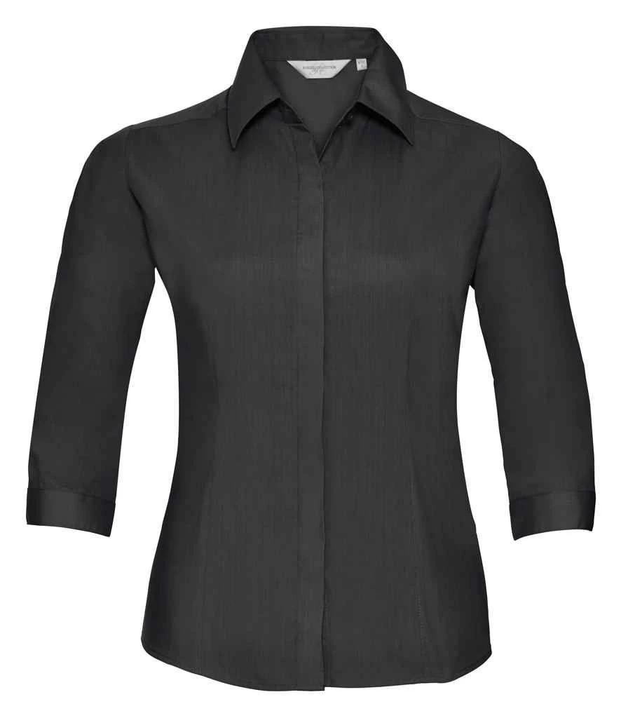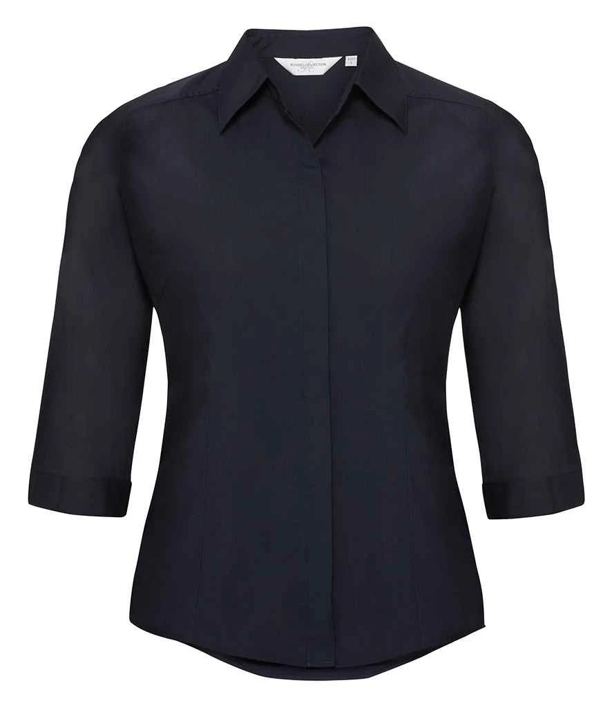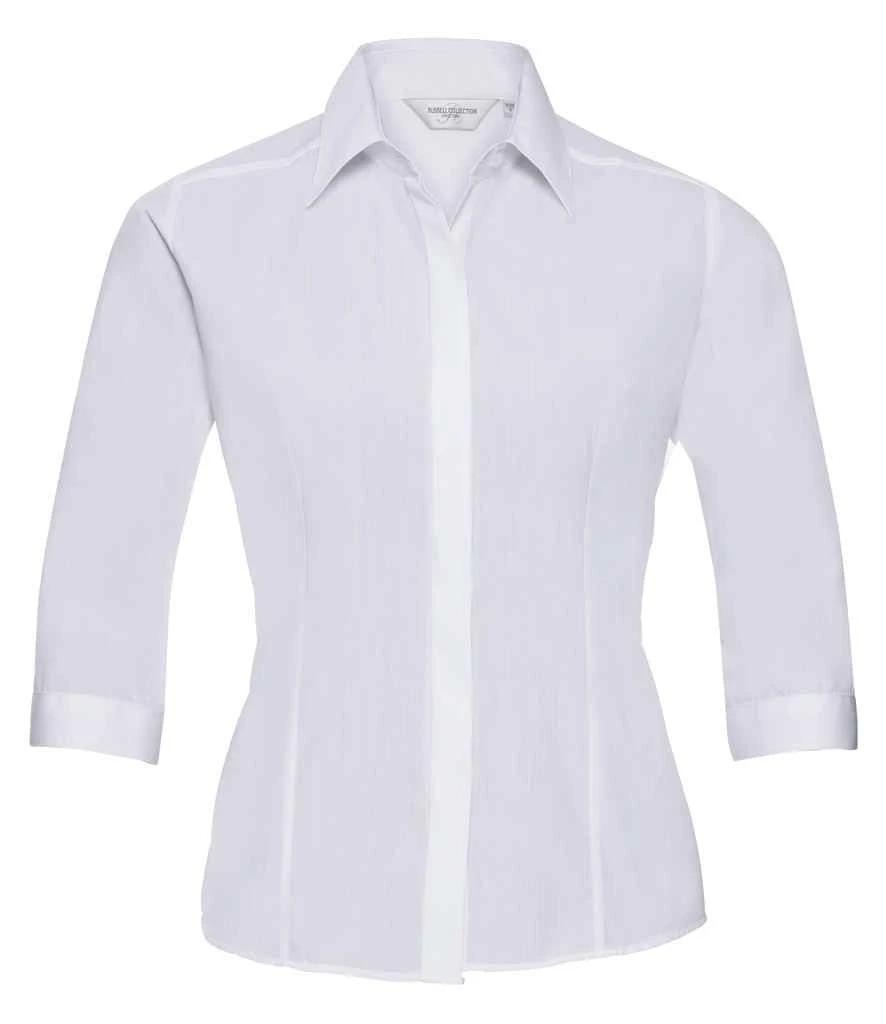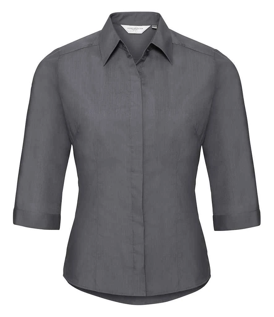 Russell Collection Ladies’ 3/4 Sleeve Fitted Polycotton Poplin Shirt