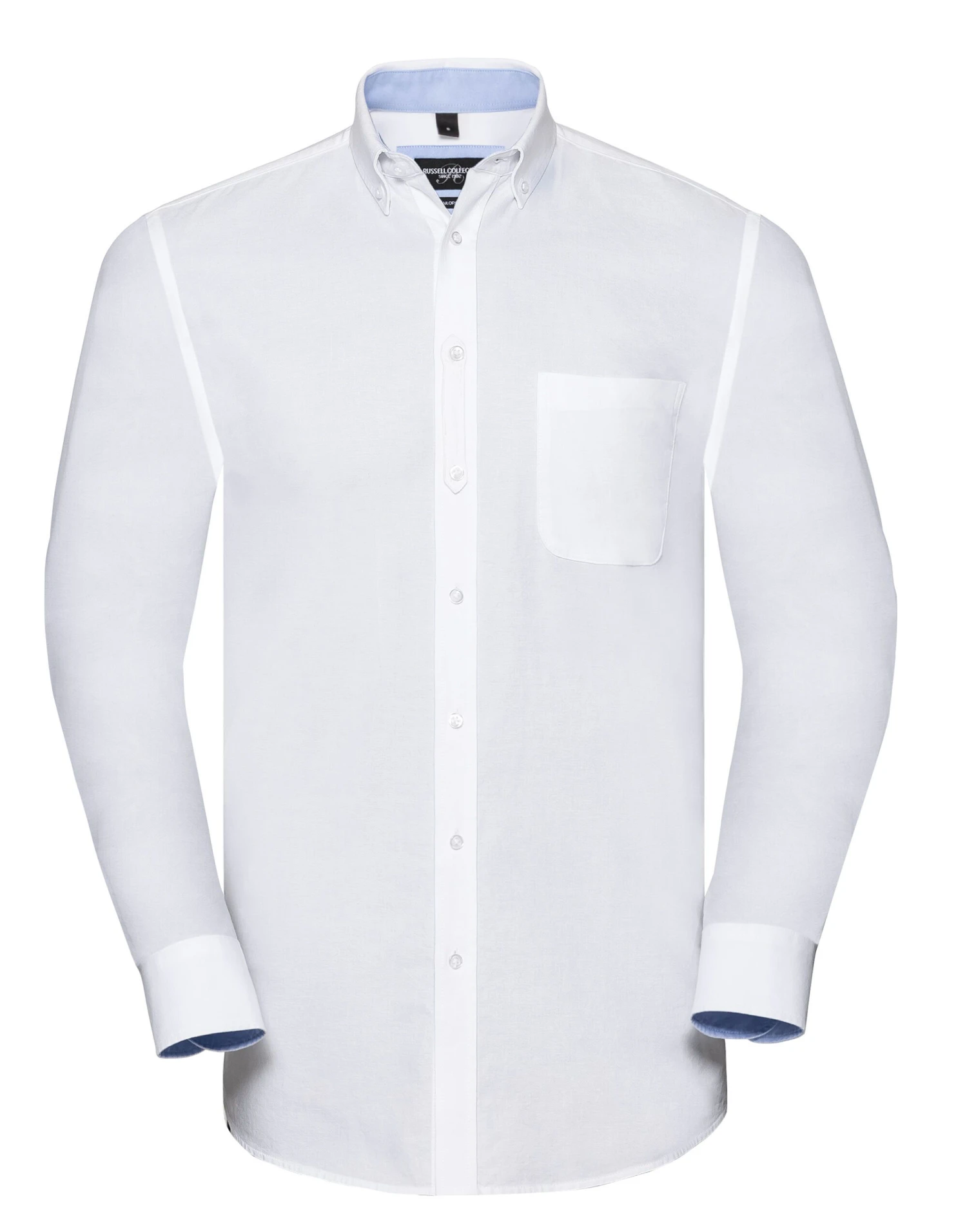 Russell Collection Mens Long Sleeve Tailored Washed Oxford Shirt