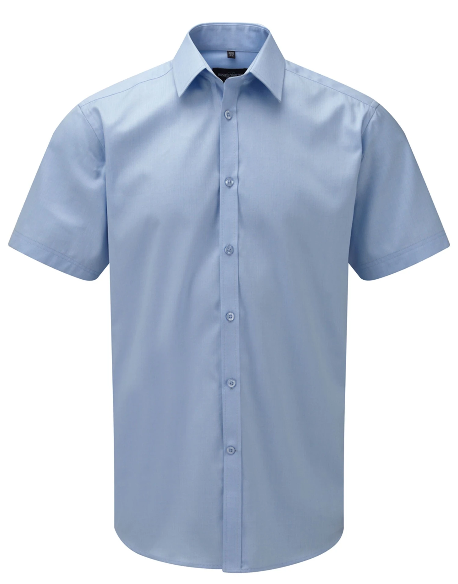 Russell Collection Mens Short Sleeve Tailored Herringbone Shirt